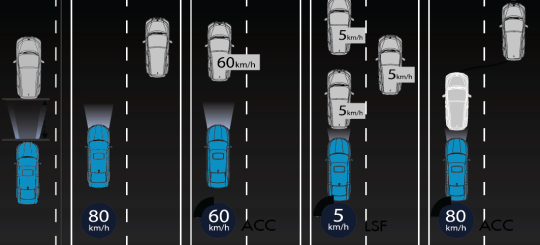 ![]() Trong điều kiện lái xe vào ban đêm, hệ thống tự động chuyển đổi giữa đèn chiếu gần và đèn chiếu xa tuỳ thuộc vào tình trạng giao thông | ![]() bao gồm dải tốc độ thấp (ACC WITH LFS) Hỗ trợ duy trì khoảng cách với phương tiện phía trước khi lái xe trên đường cao tốc. Hệ thống sẽ tự động tăng tốc và giảm tốc giúp việc lái xe thoải mái hơn. |